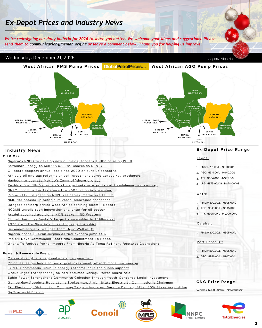 The Major Energies Marketers Association of Nigeria (MEMAN) is an energy industry association led by Mr Clement Isong, who serves as the Executive Secretary and CEO. The Association comprises a distinguished lineup of reputable companies: 11Plc (formerly Mobil), Ardova Plc, Conoil Plc, MRS Oil Nigeria Plc, NNPC Retail Limited, and TotalEnergies Marketing Nigeria Plc.